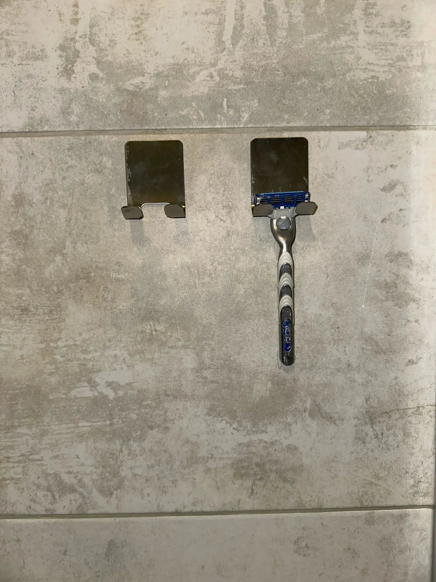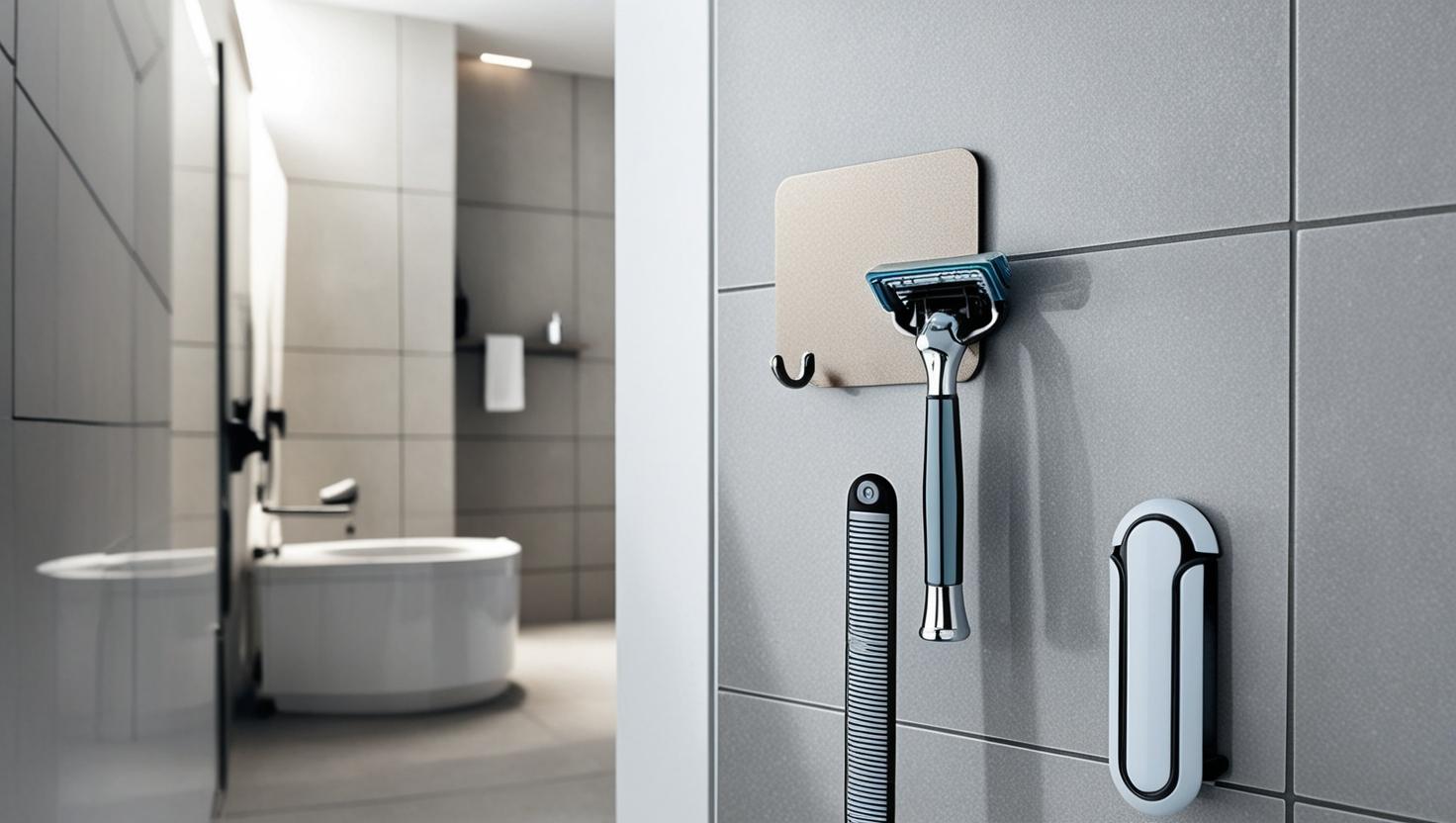 סכין הגילוח תלוי מסודר על הקיר, במקום ייעודי ונגיש