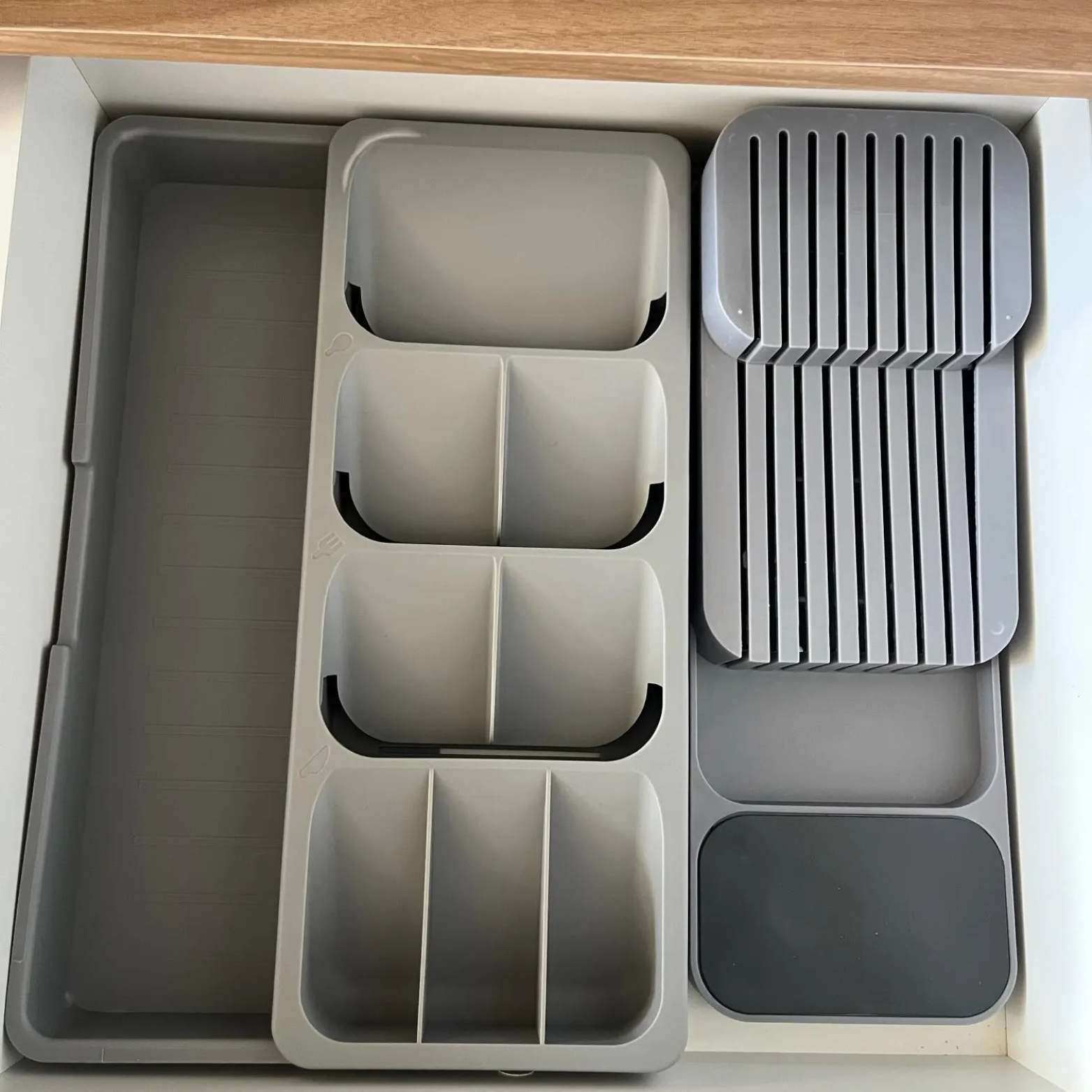סדר את כלי הסכום לפי קטגוריות – כפיות קטנות, כפות, סכינים ומזלגות – כל אחד בתא ייעודי. זה לא רק יפה לעין – זה גם חוסך זמן בחיפוש ומקנה תחושת סדר קבועה.