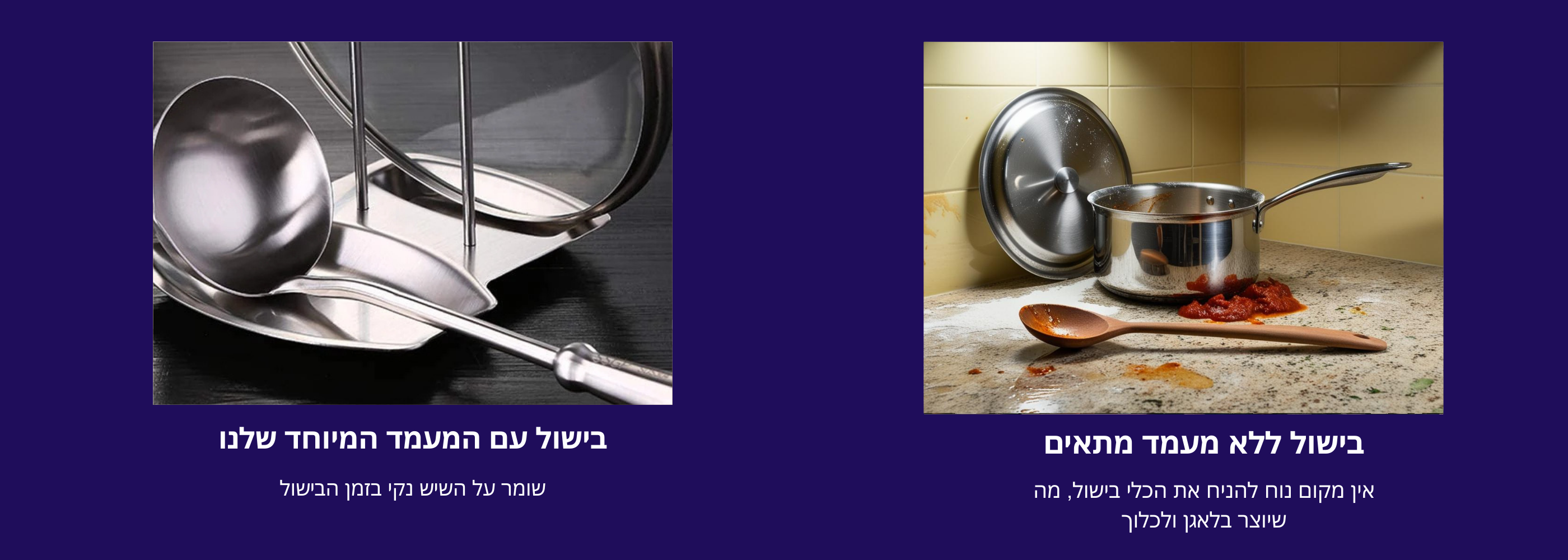 אם את מתמודדת עם מכסים שמונחים בכל מקום, כפות בישול בלי מקום קבוע או פשוט אוהבת שהמטבח שלך נראה מתוקתק – המעמד שלנו מציע פתרון פרקטי, אסתטי ונוח שמתאים בדיוק לצרכים שלך.