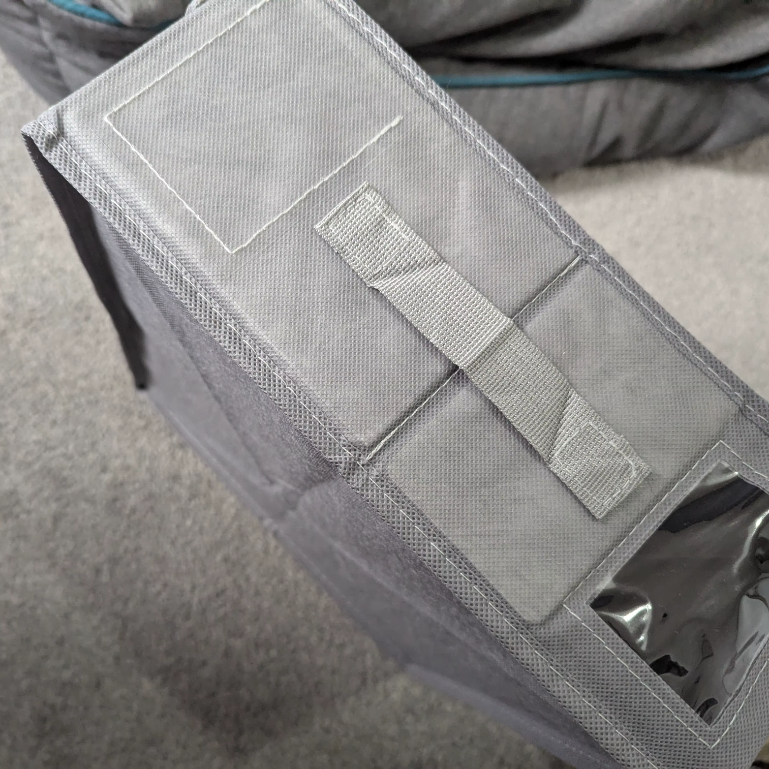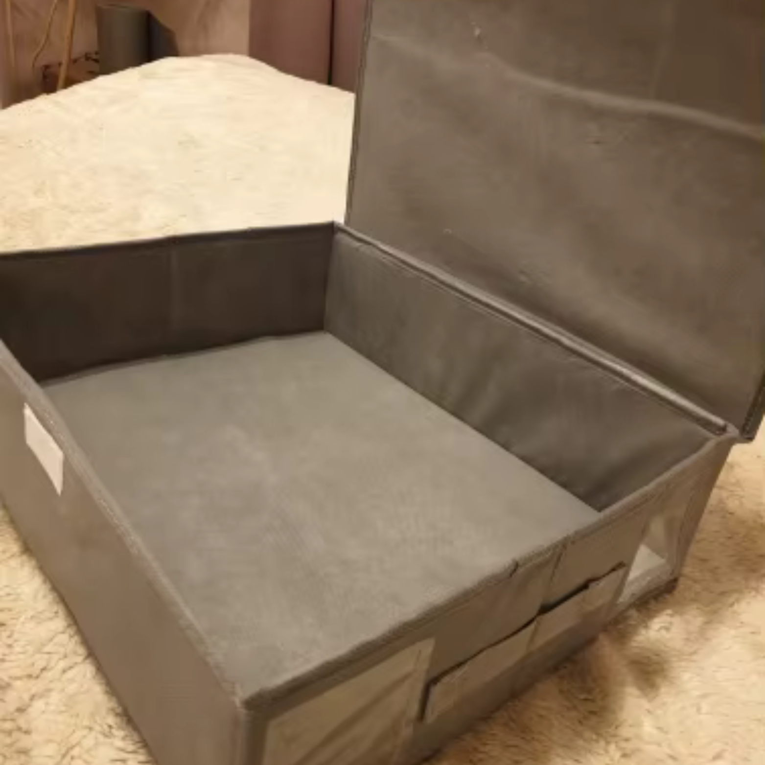 סט קופסת אחסון פרקטית ומעוצבת לארגון מצעים, שמיכות, בגדים ועוד. עשויה מבד עמיד, נושם וקל לנשיאה. פתרון אידיאלי לשמירה על סדר בארון ולשמירה על הבגדים נקיים ומוגנים